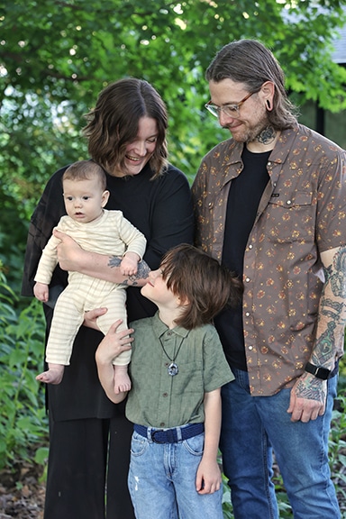 Our Sons: Our son, Rollo, is 5 years old and into being outside, riding his bike and scooter, building and helping Andrew with tools and yard work, painting, baking, and playing with his animal figurines. He is a very thoughtful little boy and loves to help out whenever he can. Rollo has been such a caring big brother! Our youngest son, Bruin, is growing so fast and his favorite toys are his piano and books.