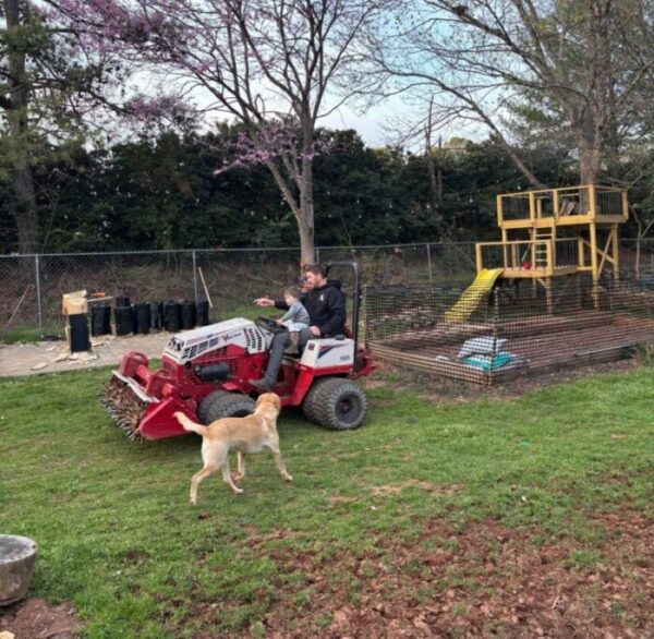 -Sitting on the back deck and enjoying the sunset while Asher drives his toy tractor around the backyard