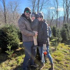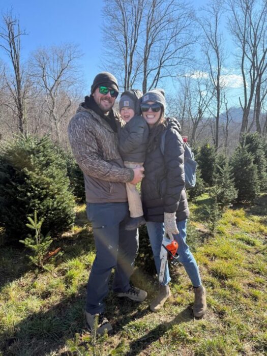 -Cutting down a Christmas tree in the mountains with Ben's family
