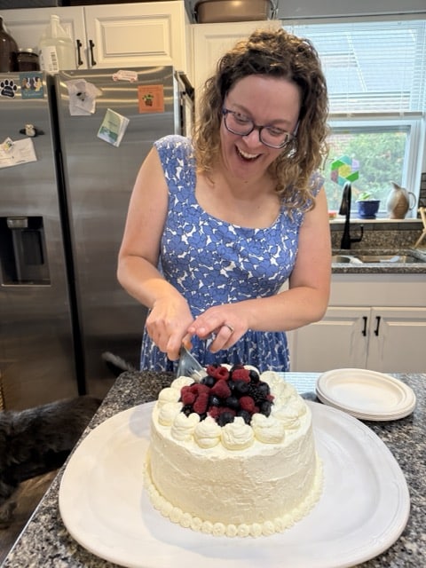 Dan says: Dana is a goofy, sincere, and kind person who loves fiercely. She adores children and has an incredible gift for connecting with all of the kids in her life. In daily life, Dana is an avid reader and a fantastic cook. She always wants to be near the water, and she particularly loves to swim and paddle lakes and rivers in her kayak. She also dabbles in many different art forms including painting, singing, dancing, and stained glass. Dana works as a scientist for an organization that funds Parkinson’s disease research. She loves her job and that she gets to do something so impactful. Dana works from home full-time, but travels to cool places for conferences occasionally.