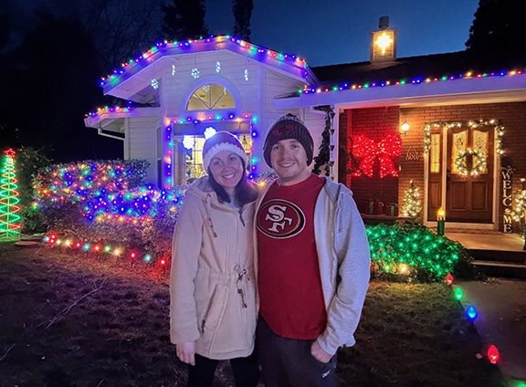 Our house is a custom home with three bedrooms on a half-acre lot with a big yard. We keep it cozy and welcoming, and over the years we’ve remodeled and updated our home to make it more “us.” It’s become the home where both sides of our families come for the holidays. One of our favorite traditions is decorating our yard for Christmas and getting on the list of houses in town to drive by for light-looking. We’re excited about raising a family here!