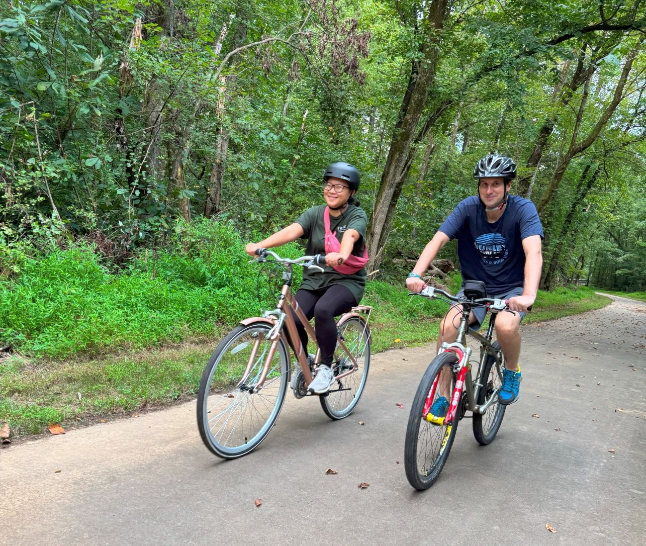 We really enjoy exploring new cities, restaurants/food, parks, riding our bikes, and attending local festivals/community events. We are within driving distance to the beach and the mountains, which makes long weekend trips easy to do.