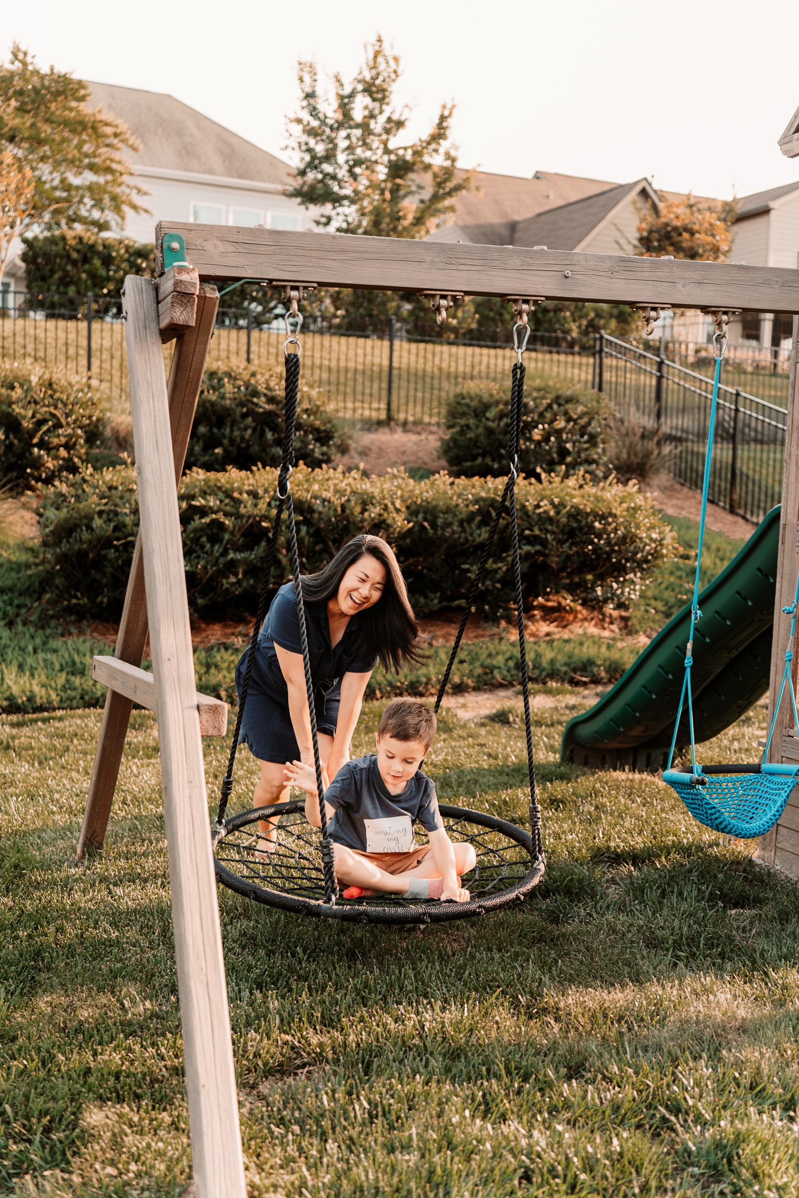 We live in a newly built, five-bedroom home in the suburbs of North Carolina. Our house features an open floor plan and a spacious kitchen—perfect for hosting family and friends, which we love to do. There’s plenty of room both inside and out, with a fully fenced backyard with a playset, a large patio, and a screened porch where we spend time relaxing and playing as a family. We love having a raised herb garden, seeing things grow and harvesting the herbs.