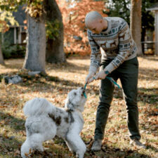 In most of our photos you will find our fluff-ball puppy, Peaches. She is super sweet and loving. She loves people (especially children) and wants everyone to come give her pets. She loves playing with the neighborhood kids and cuddling with our niece when they come to visit.
