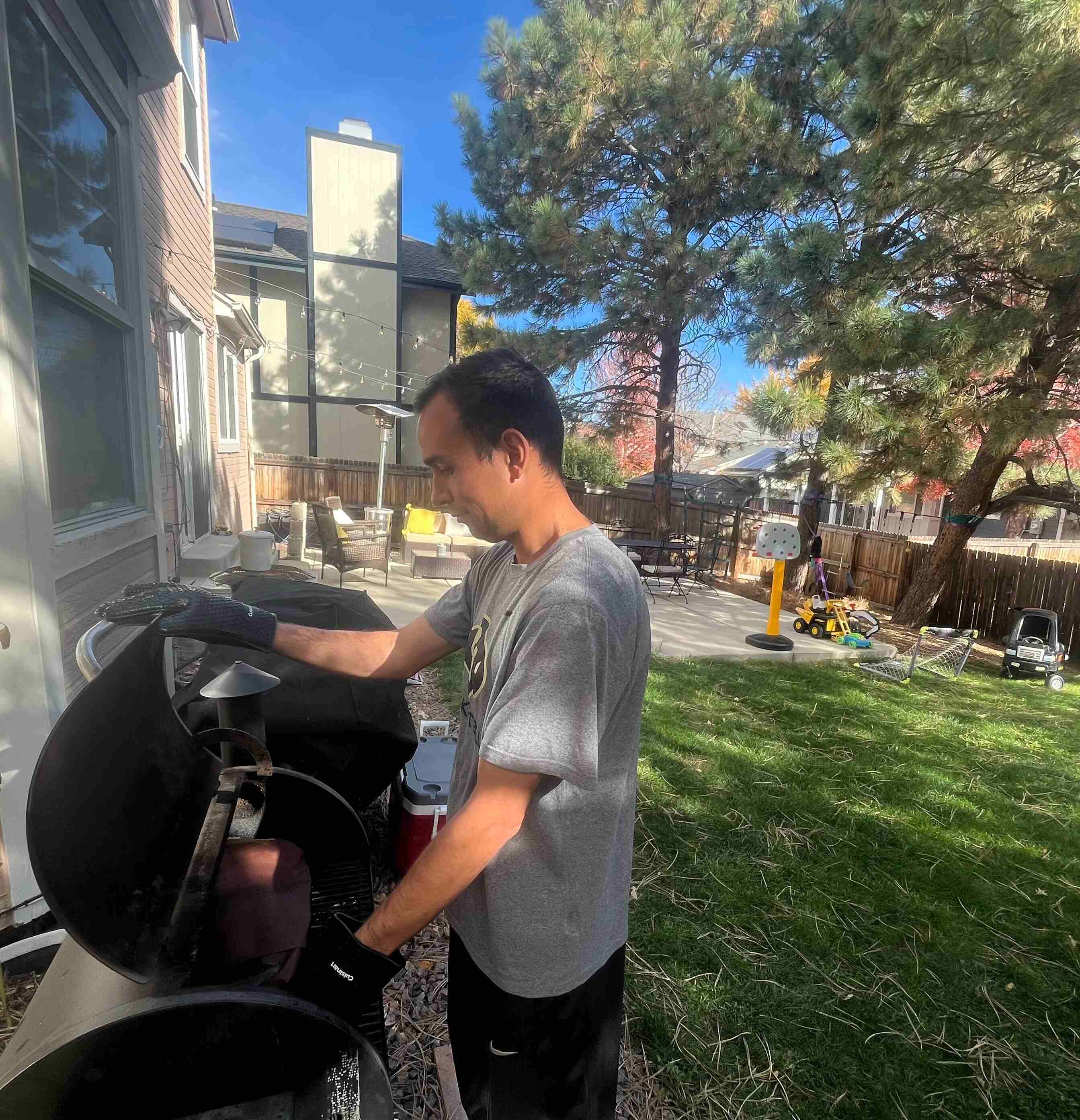 We love our quiet neighborhood, which is perfect for biking and walks. Whether we’re eating dinner or playing in the backyard, we spend a lot of time outside. We’re also lucky to be close to great parks and within walking distance of Giorgio’s school. We live about 15 minutes away from the zoo and children’s museum, which always make for a fun outing.