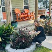 I grew up in the same town that we currently live in, where my parents, sisters, and their families live just down the road. I studied biology in college which has contributed to my love of animals, the outdoors, and nature. I operate our small landscaping business, where I get to do all of things I love every day–being outside, playing with plants and flowers, and creating beautiful outdoor spaces for our clients to enjoy. When I’m not working, I enjoy spending time with Jesse and our dogs, tending to our tiny chicken flock, and working in our garden where I love to grow vegetables. Growing up at the beach has given me a deep love for fishing. I cannot wait to teach our child how to love and care for animals and how to have fun exploring nature.
