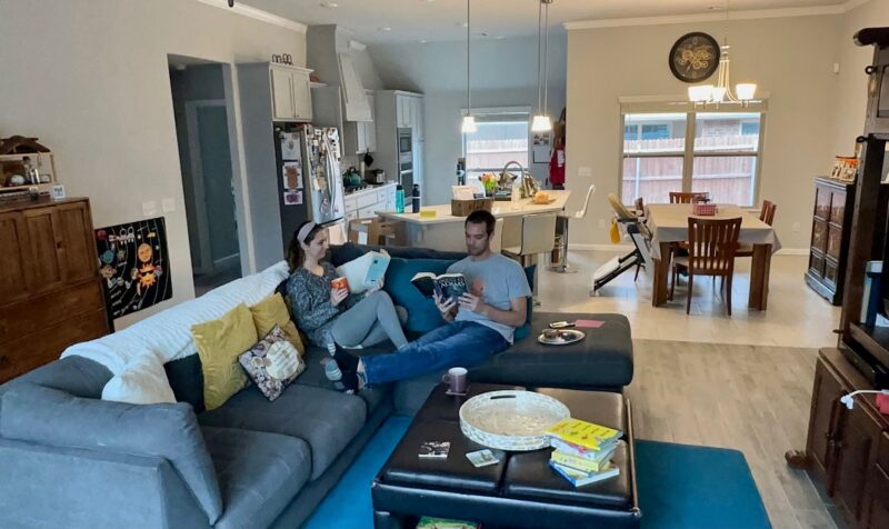 Our home is located on a quiet cul-de-sac in the suburbs. Museums, restaurants, parks, and other fun activities are a short drive from our home, and our local Catholic church is just 10 minutes away. Whether relaxing on the couch or playing with family and friends, our spacious home is perfect for our growing family.