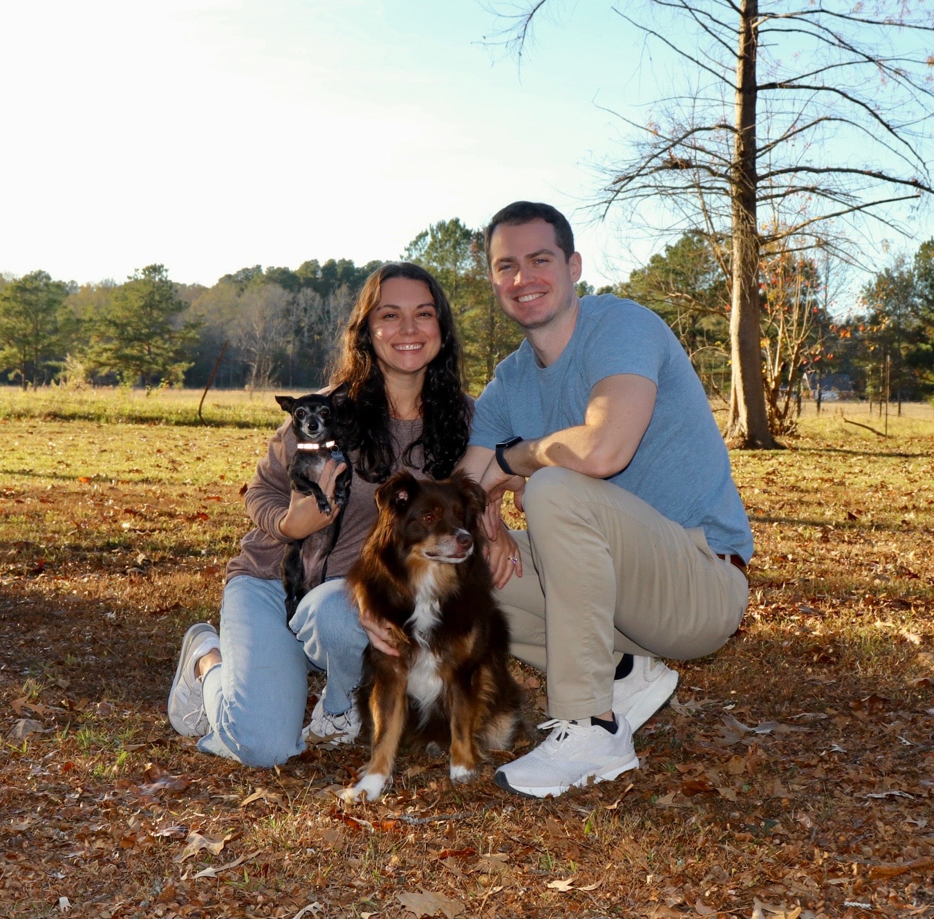 Our dogs are a large part of our family. We have an 11-year-old teacup Chihuahua (no, she's not mean!). She is the life of the party and the sweetest, most loving pup you will ever meet! She loves to give kisses. Our friends often refer to her as the queen because she is definitely in charge. We also have a 6-year-old mini–Australian Shepherd. We may be biased, but he is B-E-A-U-tiful! He is a sweet, protective boy who will never decline an invitation to play! They have both been around various children of all ages and enjoy the extra love!
